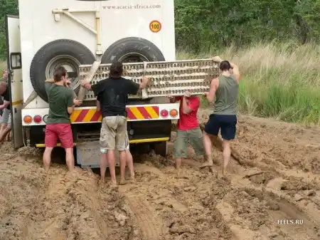 на такой случай в кузове нужно возить дюжину босоголожопых африканских зулусов, которые по щелчку пальцев вытягивали бы фуру с криками : Хоп-хоп!