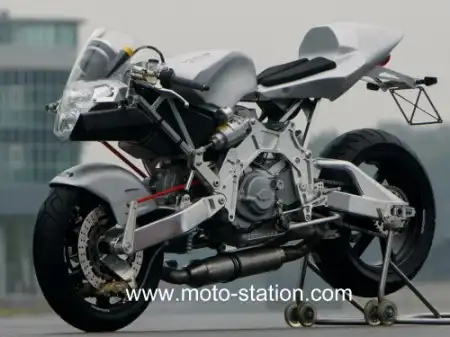 Кто сказал что он полноприводный! Автору надо или читать поучиться или поискать во внешке мотоцикл Bimota- Testi 2D комплектация Vyrus ( это он на фотке). Вот вам в подверждении цитата из журнала МОТО за август 2004 года (стр 22): В подвеске байка использованы пневмоамортизаторы-они без обычных пружин (подвеска называется маятниковая с двумя воздушными амортизаторами). Рулевое управление байка-система тяг с шарнирными соединениями.
