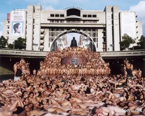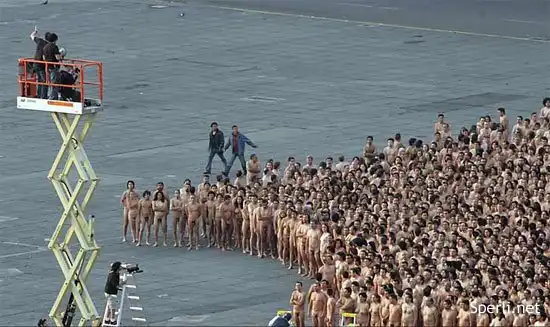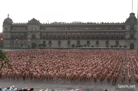 Более 18.000 человек сбросили с себя одежду и расположились на огромный главной площади Мехико, приготовившись к съемке, которую проводил фотограф из США Спенсер Туник, крупнейший специалист по "массовой обнаженке".