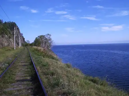 Это участок трассы, практически вышедший из употребления после строительства Иркутской ГЭС, поскольку вода залила часть трассы (сентябрь 2005).
