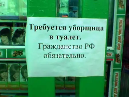 Весело!!а нахрена уборщице в сортир Российское гражданство??=))