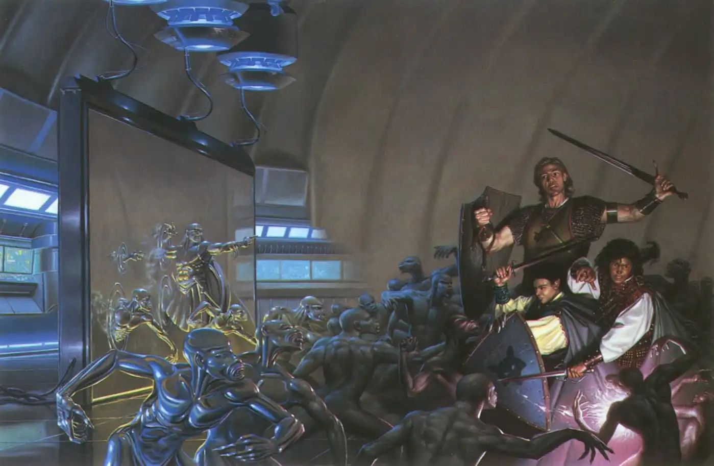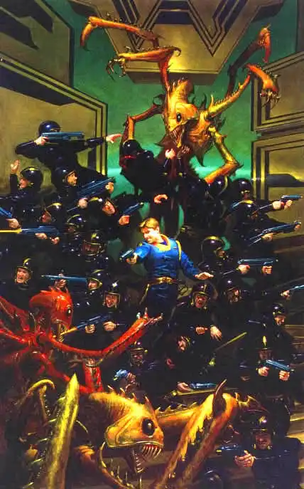 Это вроде иллюстрации с обложек книг, одну узнал "Армагедон" Злотникого