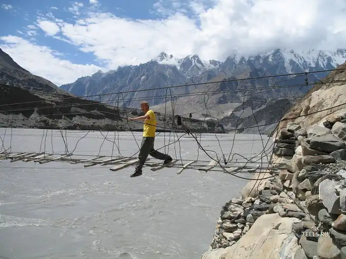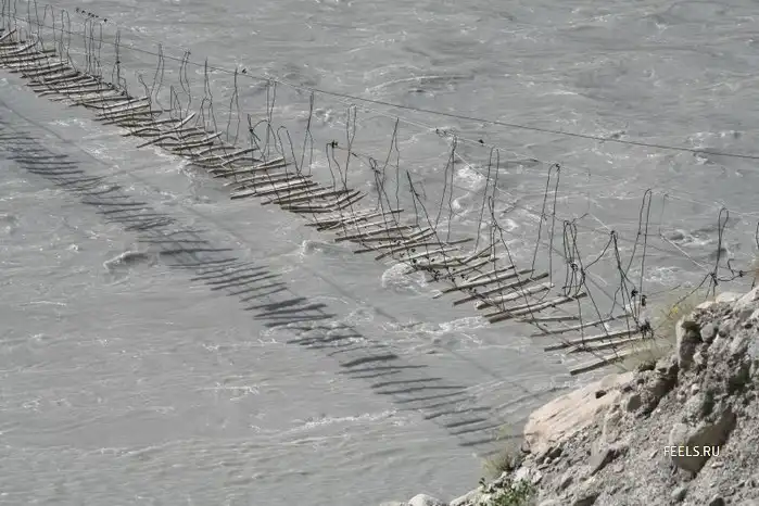 Обычный мост в горной месности, я сам много раз ходил по таким, ни какого адреналина.