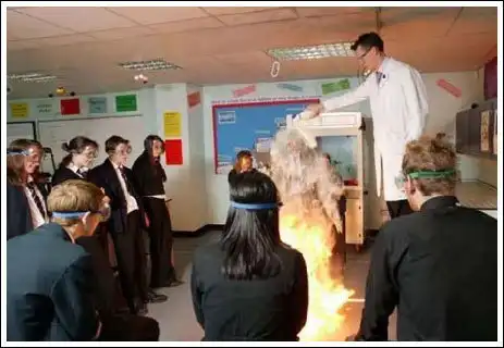 Это опыт, нам такой же показывали, а еще помню старый опыт на каком-то видео, тут есть нет, не помню, с серной кислотой что ли, всем таким "опытам"-