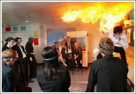 Охереть можно! Как он только себе башку не поджег. А прикольно бы было. если бы в школе и в универе такие опыты показывали!