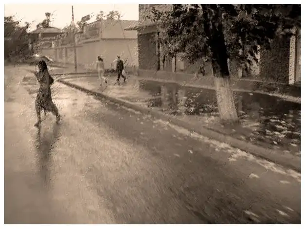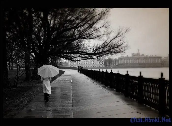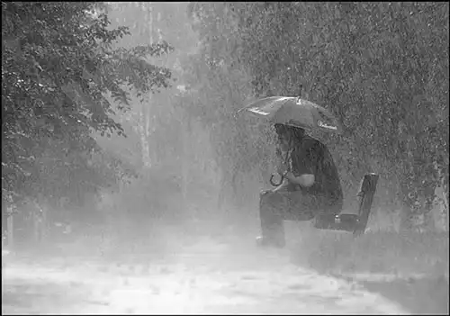 На встречу Ему идет Она. Босоножки промокли. Зонт оставлен дома. Прическа уже никуда не годится. Идет… шлепая по лужам в свое удовольствие. Она поднимает лицо к небу и радуется каждой капле, упавшей на ее лицо. С ее волос стекают щекотные струйки воды, и Она смеется. Она подставляет пустые ладошки под падающие капли и напевает какой-то не замысловатый мотив. Она чувствует себя счастливой.