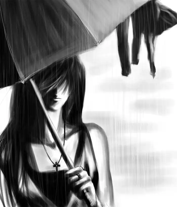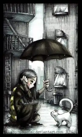 “Промокшая, несчастная, “сумасшедшая” - думает Он.