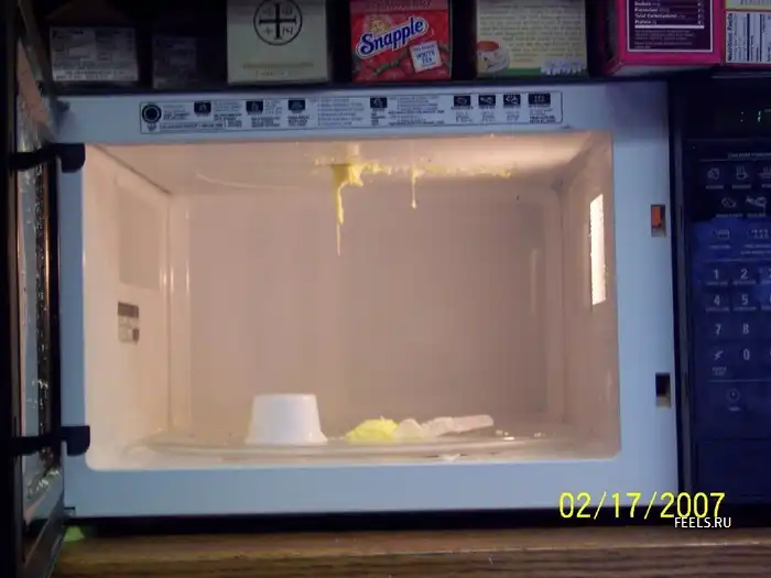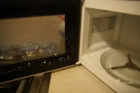 Еще меня отец нае"л.......сказал, что реально сварить яйца в микроволне, без воды. Ну я заху"л 5 штук на тарелочке.....на 2 минуты поставил. Тока покурить отошел, там, бл", прям бой начался. На последнем взрыве дверцу открыло, и последнее яйцо когда рвануло, вся эта херь долетела до стенки холодильника, и заляпала все мой магнитики. Он ржал, как лосяра, аж до слез..." (с)