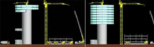 Ещё авторы этого проекта гордятся тем, что предусмотрели технологию быстрого возведения башни со сборкой этажей прямо на месте. Краны и прочая традиционная строительная техника потребуются строителям лишь при возведении центрального ядра здания, вокруг которого и будут крутиться этажи и ветровые турбины.