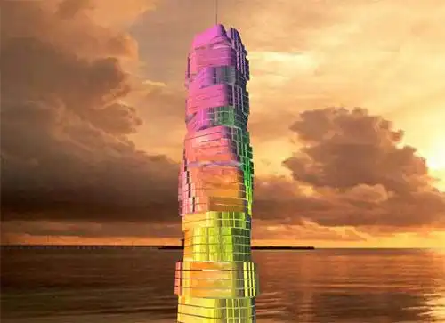 А если позволить всем этажам вращаться согласованно, под управлением компьютера, возникают интересные эффекты...Задав разную скорость вращения для различных этажей, по башне можно пускать сверху вниз и снизу вверх крупные волны. И ведь им есть где разгуляться — высота здания составит примерно 310 метров. Представьте, как это подвижное великолепие будет выглядеть ночью!