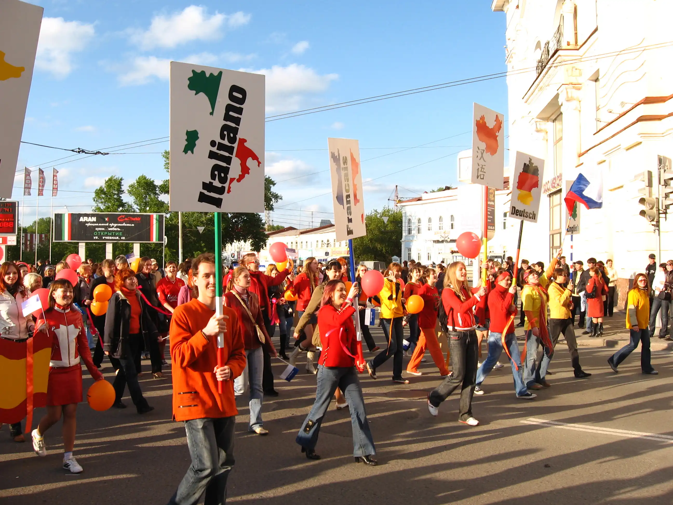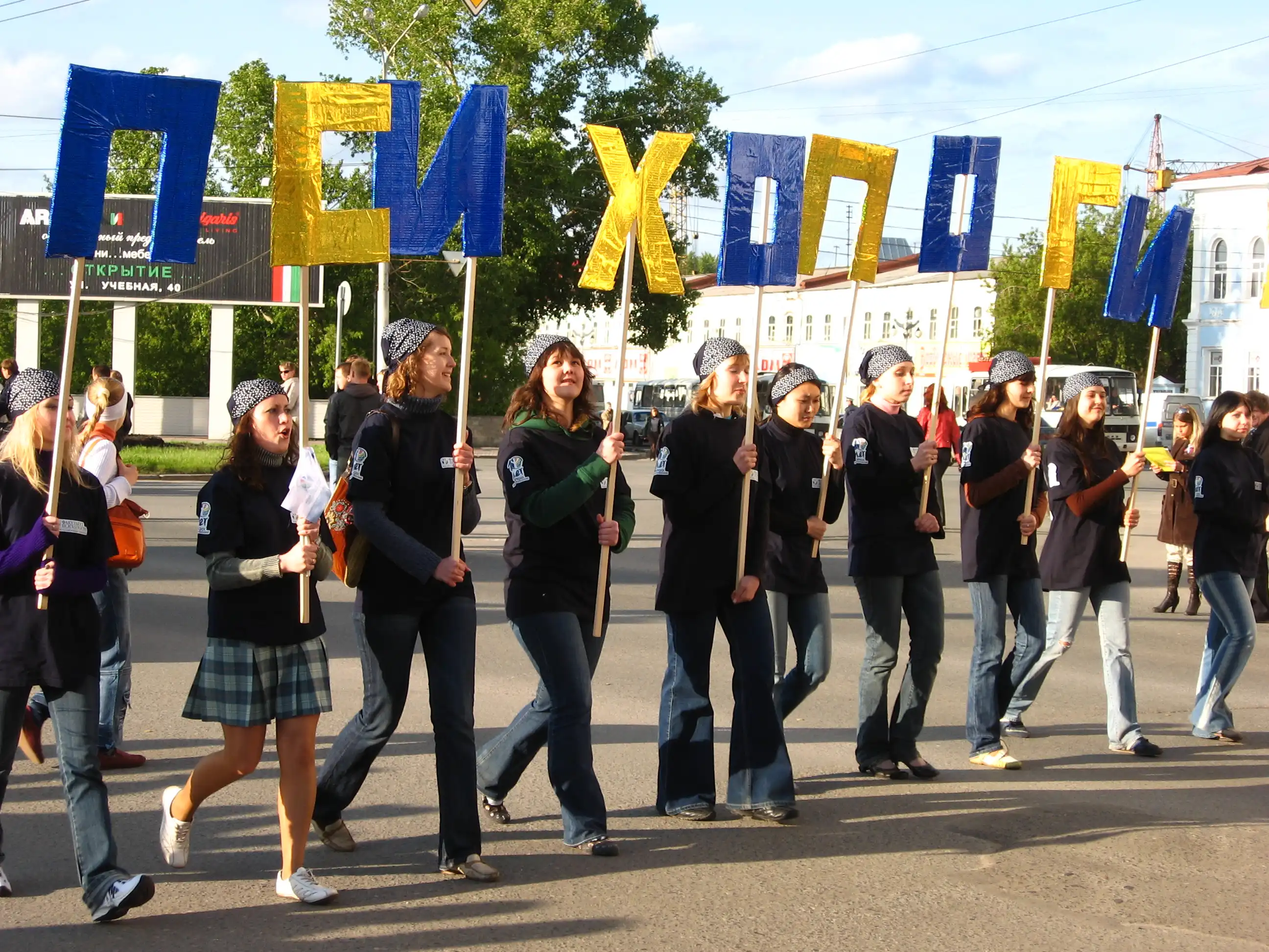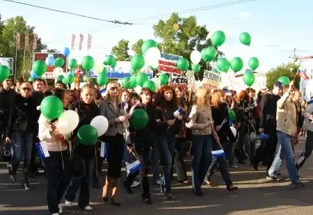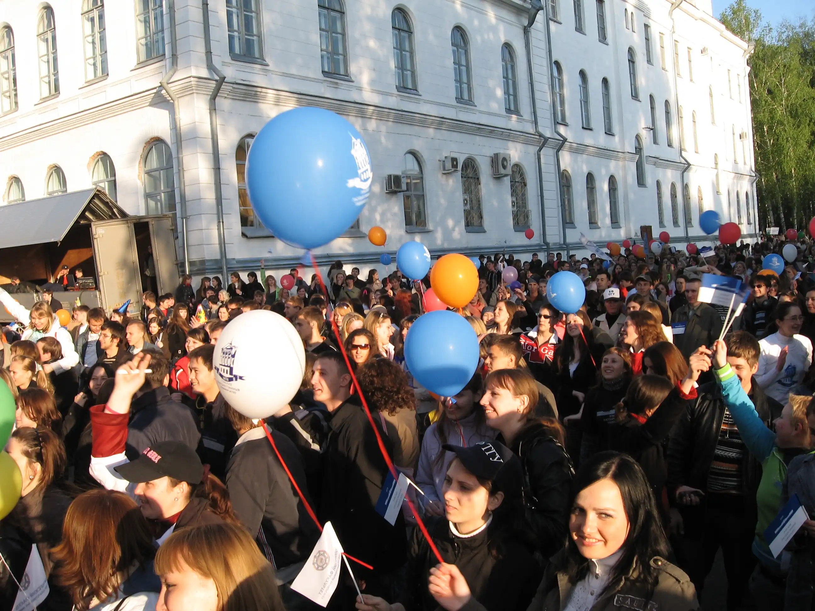 ТГУ 5 лет устраивает шествие, ТУСУР тоже устраивает шествие и полеты компов, теликов (не заню сколько лет этой традиции ТУСУРа) - итог один народ отрывается, гуляет и празднует.