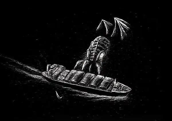 Сделана на основе иллюстрации, помещенной на обложке книги The Mythos and Other Kindred Horrors Р.Говарда.