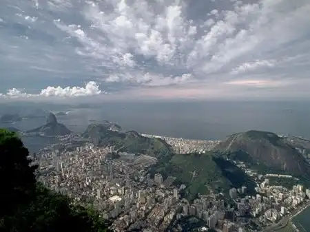 29. Вид с горы Корковаду на район Ботафогу, залив Гуанабара и гору Пан-ди-Асукар.