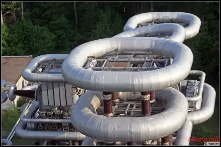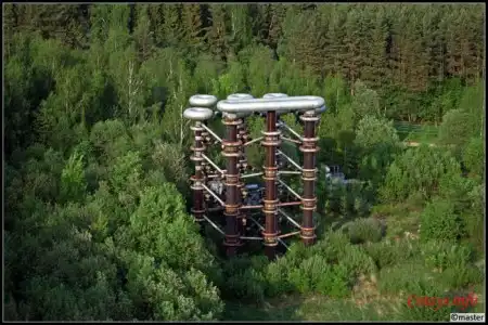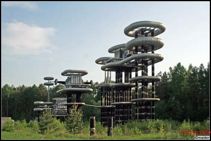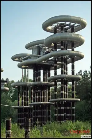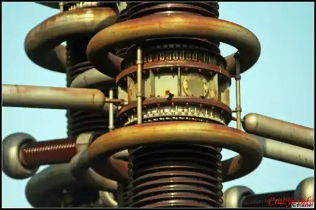 З.Ы. На фотографиях - различные комбинации катушек Теслы. Это особая катушка, которая в классическом исполнении имеет в нижней части намотку в 1 виток, но толщиной в несколько слоёв (обычно очень много), высота таких катушек может достигать очень значительных величин, т.к. нижняя часть с этаким "рулетом" продолжается колонной (не имеющей сердечника), на которой находится уже обыкновенная обмотка. И чем больше высота (а значит и количество витков) этой колонны, тем более мощной становится катушка. Сам Н.Тесла применял катушку, которая имела суммарную высоту более 50 м. (20 м - подземная часть, остальное - надземная). Копия этой катушки (которая располагалась в окрестностях Нью-Йорка в месте Ворденклиф) - на одной из ваших фотографий. Заканчиваться катушка Теслы должна горизонтальным кольцом (где есть ещё одна обмотка), покрытым алюминием (на снимках все установки так, или иначе, имеют эти кольца).