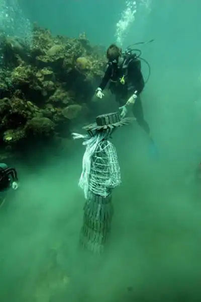 Это уникальный художественный проект создан для того, чтобы поддержать карибскую культуру и создать условия для регенерации кораллового рифа. Парк подводной скульптуры возник не более года назад и создан он, в основном, для дайверов.
