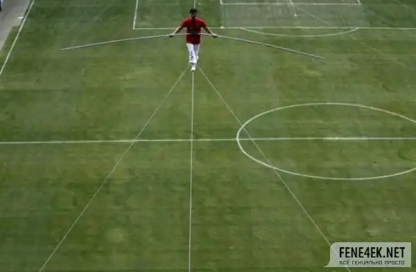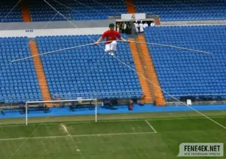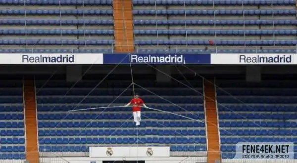 Он пересёк в длину стадион мадридского Real !В общей сложности преодолел 160м на высоте 40м без какой-либо страховки!