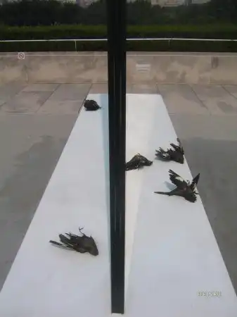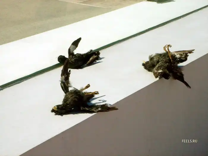 а ну-ка живо обьясните мне: это птицы врезались или это приложение к памятнику?