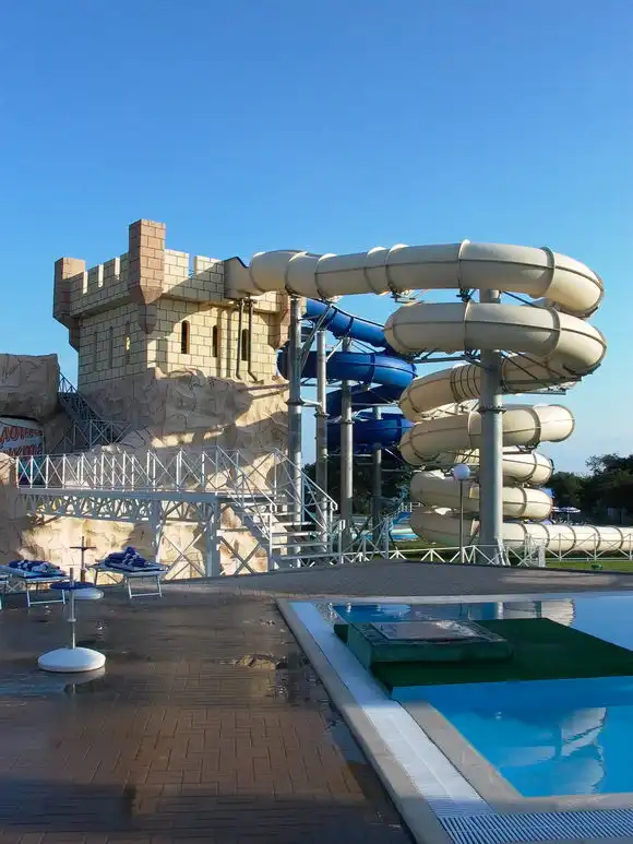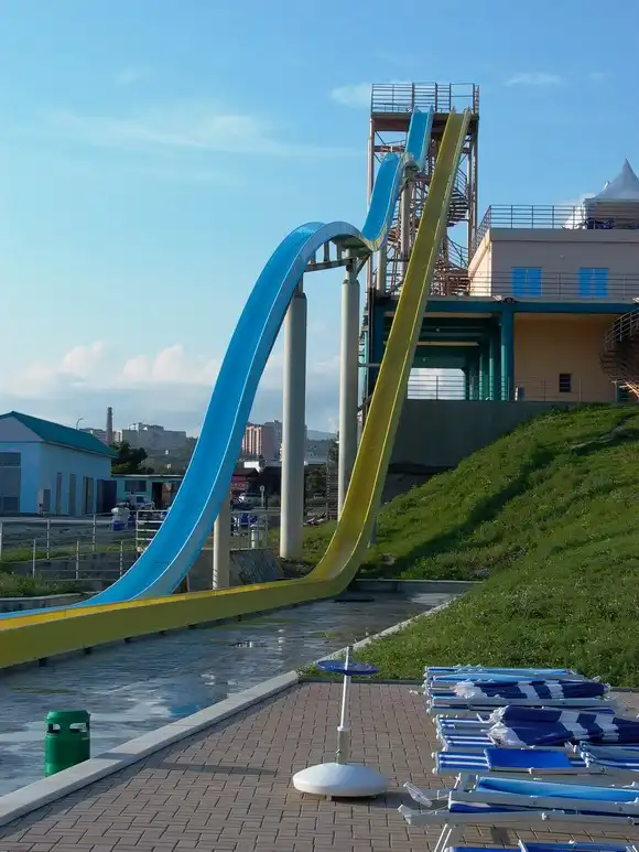 я там тоже была,на второй горке каталась,она самая прикольная!!!а вообще этот аквапарк просто зае*аный