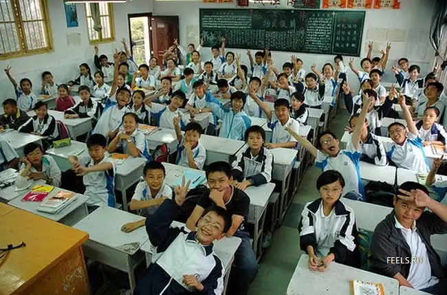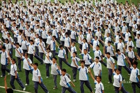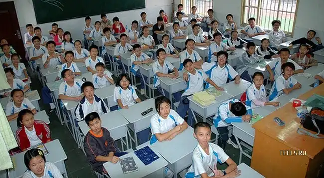 Китайцы жгут. Среднее число учеников в классе колеблется от 70 до 90 учеников!А уроки физкультуры это вообще жесть )))