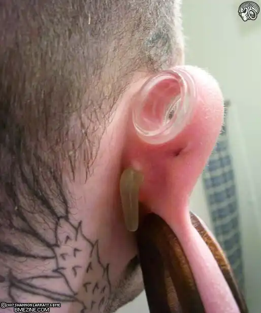 Что кусочек уха вырезают??? Или дырочку делают и растягивают потом???