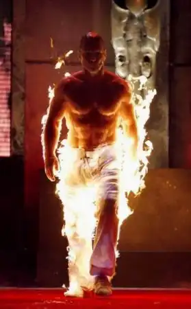 Кошмар!Я бы никогда бы не пошла на поджигание своего тела!Ни за какие деньги!!!!