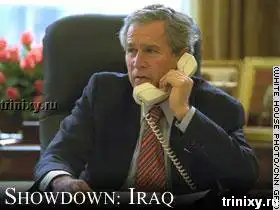 История: Джордж Буш держит книгу и телефонную трубку вверх ногами.