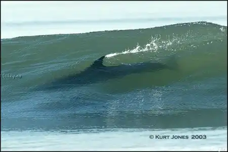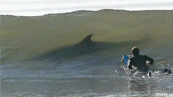 Вердикт: ПРАВДА. Но! Это не то, что вы могли подумать. Это не акула, а дельфин. Нижняя фотография была сделана сразу после первой. И знатоки могут сразу определить на ней дельфина.