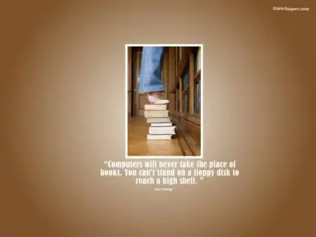 Компьютеры никогда не заменят книги. Вы же не сможете встать на дискету, чтоб достать верхнюю полку?