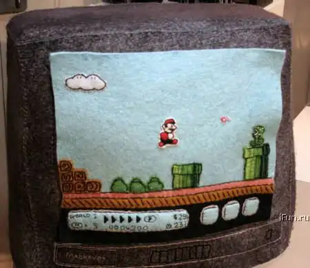 Некий умелец сшил игровую приставку Нинтендо, телевизор и игру "Super Mario Bros 3