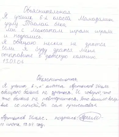 Прикольно. Помню в 6 классе был инцидент с одним пацаном и все писали обьяснительные. Один написал: "Он так матерился, что мне захотелось плакать")