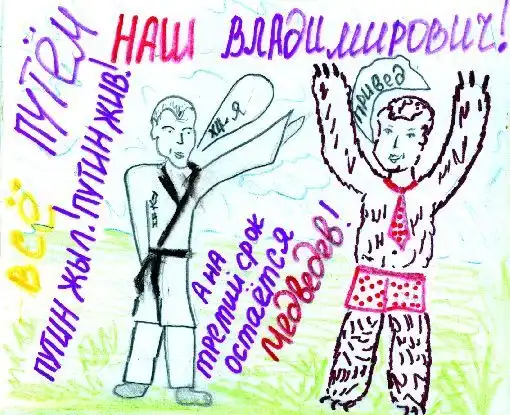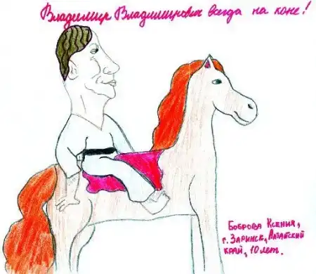 Ахаха! Явно отцы детишек отожгли.. Из рисунков следует вывод - Путин абажааает абибас, является прямым потомком Ленина и деда Мазая, носит драные носки, не прочь подснять путан под пальмами, похож на грузинскую девушку и обожает картоху. А с шариками вообще отжиг, родители постарались.