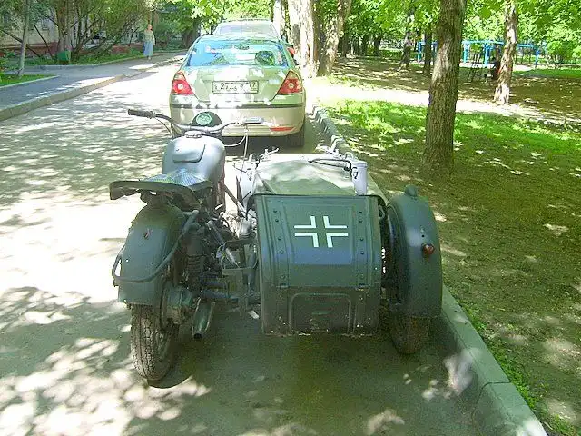 А данная вещь обычный УРАЛ с двигателем ИМЗ, просто ранних модификаций (примерно год 85-88), просто раскрас у него под фашисткий BMW.