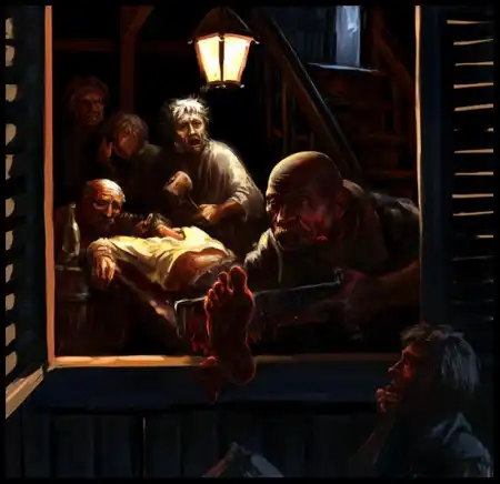 На первой на заднем плане стоит мужик с древним анастезирующим средством