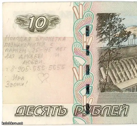 Кстати, мне как то попалась десятка с номером телефона, и подписано: Настя, 17 ;) СамоРеклама ;)