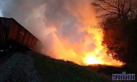 На Львовщине произошло чрезвычайное происшествие: вечером 16 июля потерпел аварию поезд с ядовитым веществом - жёлтим фосфором, окружающей местности грозит загрязнение территории.