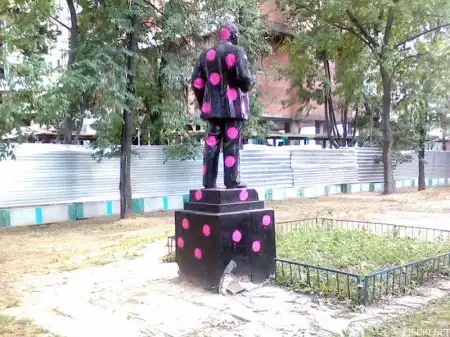 Ну и... На кой х... памятник загаживать? вандалы фиолетовые... млять бесят эмы