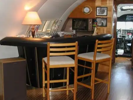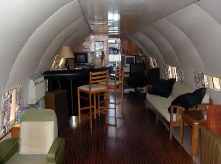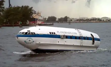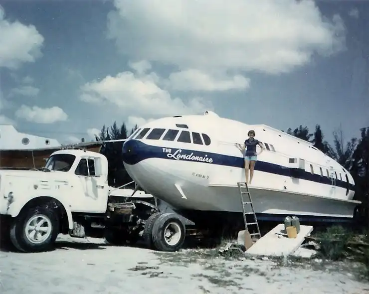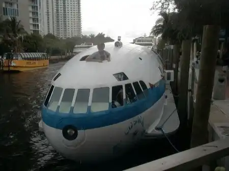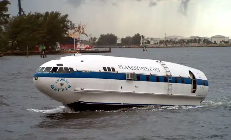 Уникальная моторная яхта "Cosmic Muffin" была построена из самолета Boeing 307 Stratoliner. Эти самолеты выпускались в 30-ых годах прошлого века. Первоначально она имела название "The Londonaire". Судно было спущено на воду в 1974 году. В наши дни самолето-яхта остается на плаву и любой желающий может попутешествовать на ней за определенную плату. Далее вы сможете посмотреть как все происходило.