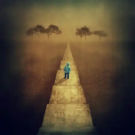 судя по мрачному настроению рисунков, автор скорее всего описывает одиночество,потерянность в огромном мире...но никак не сказки...