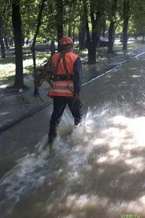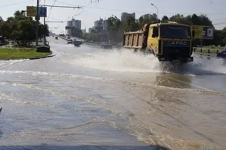 Дмитровское шоссе на севере Москвы вчера днем было затоплено в результате прорыва магистрального водопровода. Авария произошла около 13.00 при проведении ремонтных работ неподалеку от Петровско-Разумовского рынка. Вода, хлынувшая из прохудившейся 90-сантиметровой трубы, вылилась на проезжую часть, подтопив несколько прилегающих к рынку улиц на площади примерно 1000 кв. метров. Поток удалось остановить лишь через двадцать минут, когда специалисты «Мосводоканала» перекрыли аварийный участок трубопровода.