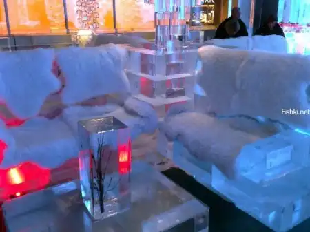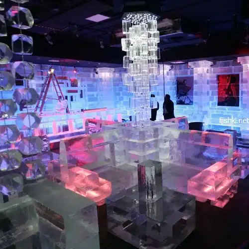 Уникальное кафе в Дубаи призвано охладить туристов в невыносимую жару. Когда температура на улице в тени достигает 44 градусов в помещении кафе она держится на -6. Вход для туристов платный и стоит 17 долларов. Изо льда сделано абсолютно все, вплоть до стульев и украшений интерьера.