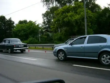 Старая проверенная волга против новенькой иномарки, эх... умели раньше машины делать в СССР