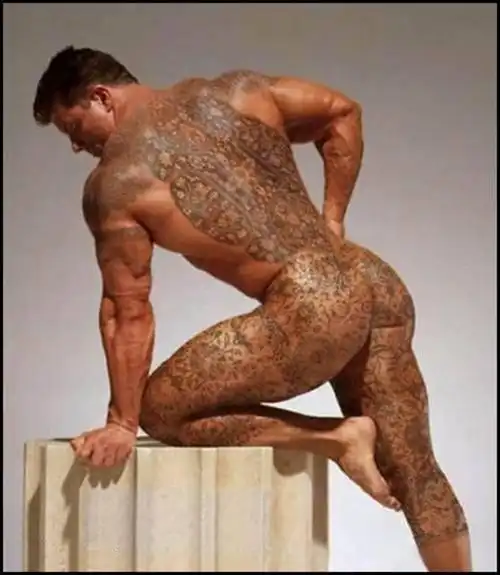 ну или хотя бы на подтянутом. Тату и дряблые руки как-то не сочетаются.