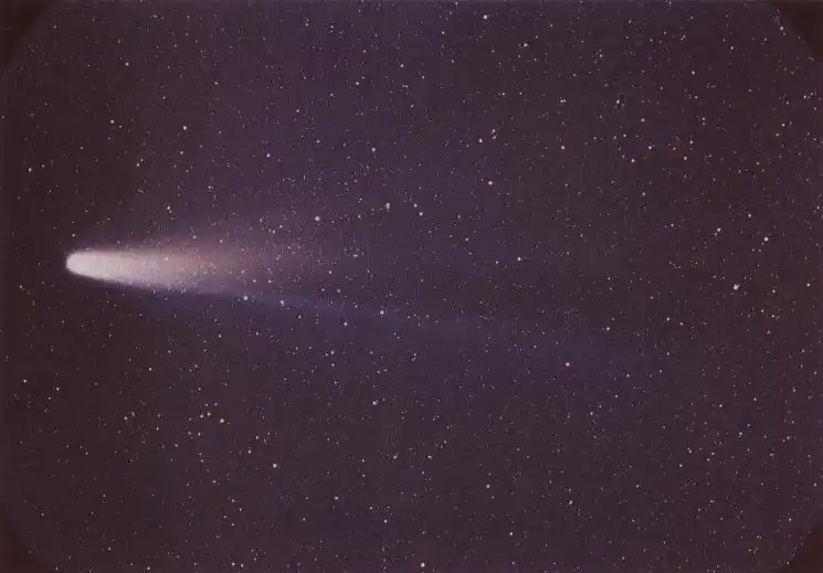 Под действием давления света и корпускулярного излучения Солнца оболочка кометы уносится от ядра, образуя хвост кометы, направленный от Солнца.