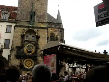 Площадь на которой стоит старая ратуша с астрономическими часами