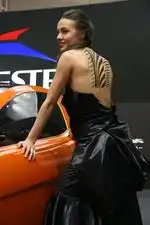 Экспозиция Vredestein завлекала к себе концептуальным Giugiaro Mustang, а также темноволосыми красотками в черных вечерних платьях. Немного боди-арта на их спинах в виде следа от протектора шин Ultrac придавало некий налет экзотики и оригинальности.