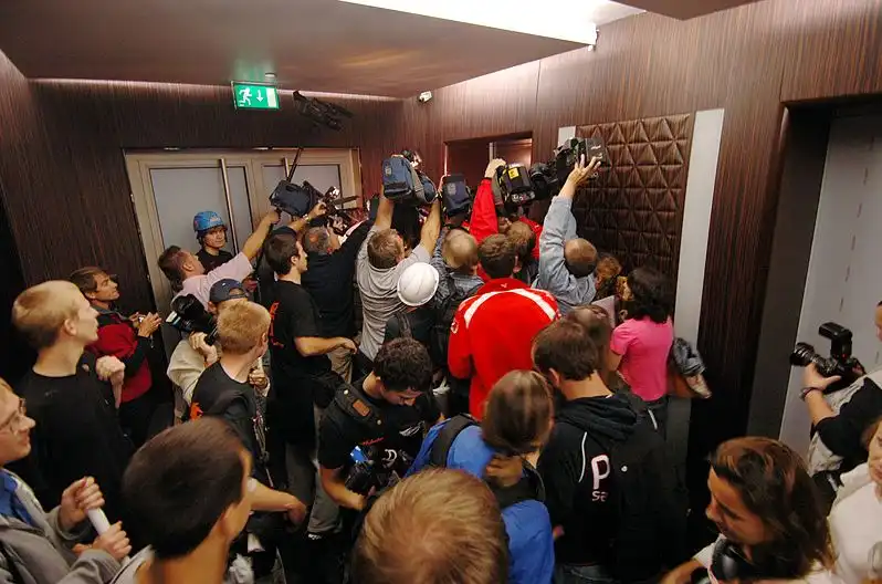 Знаменитый человек-паук Ален Робер успешно завершил восхождение на самое высокое здание Европы – башню «Запад» делового комплекса на территории центра Москва-Сити. Человек-паук обещал залезть на башню «Запад» делового центра «Федерация» за час, а добрался до верхней точки 63-го этажа всего за полчаса. Группа журналистов ожидала пресс-конференции, но она не состоялась. Милиция здесь по традиции. «Задержание» Робера в Москве было необходимой частью эффектного шоу — после фотосессии его немедленно отпустили.