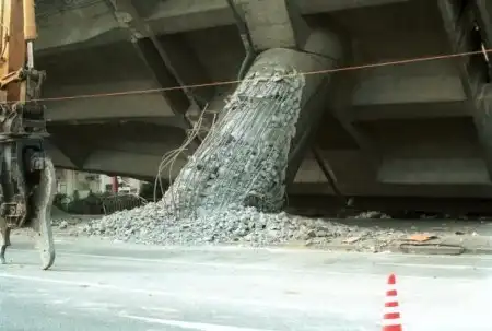 какие бы сваи не стояли при землятресния в 8-10 баллов без специальных катковых (скользящих) опор любое сооружение постигнет таже участь, то и часть этого моста