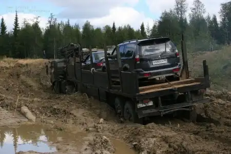 На каком-то участке дороги в несколько км они застряли по-моему на недельку - дождик прошел :). Когда давал интервью, сидел в трансе и смотрел в одну точку: дошло наконец что не по всей России дороги как европейские трассы