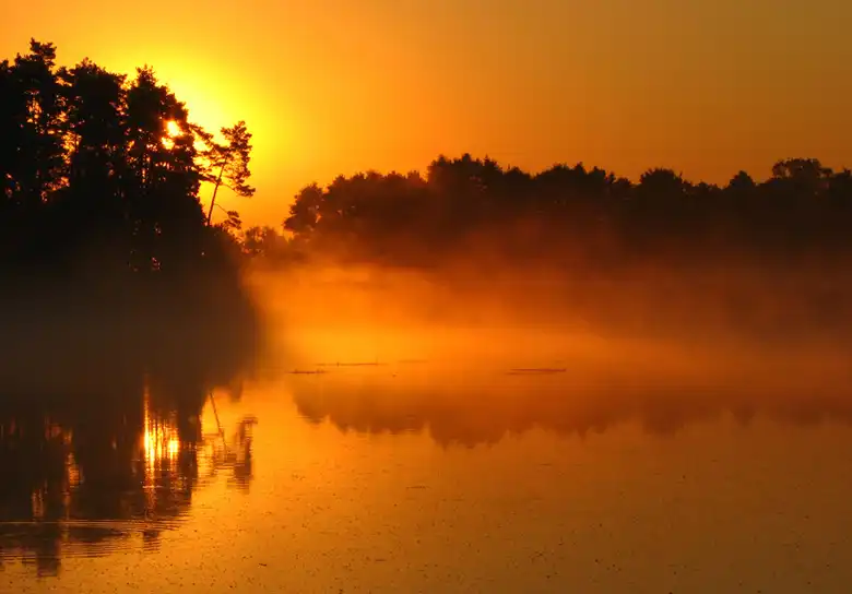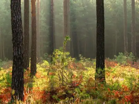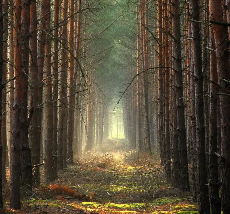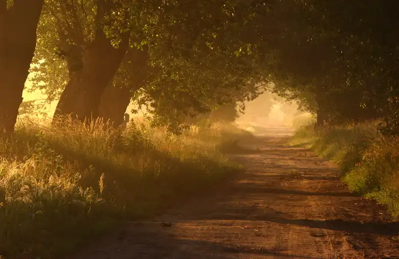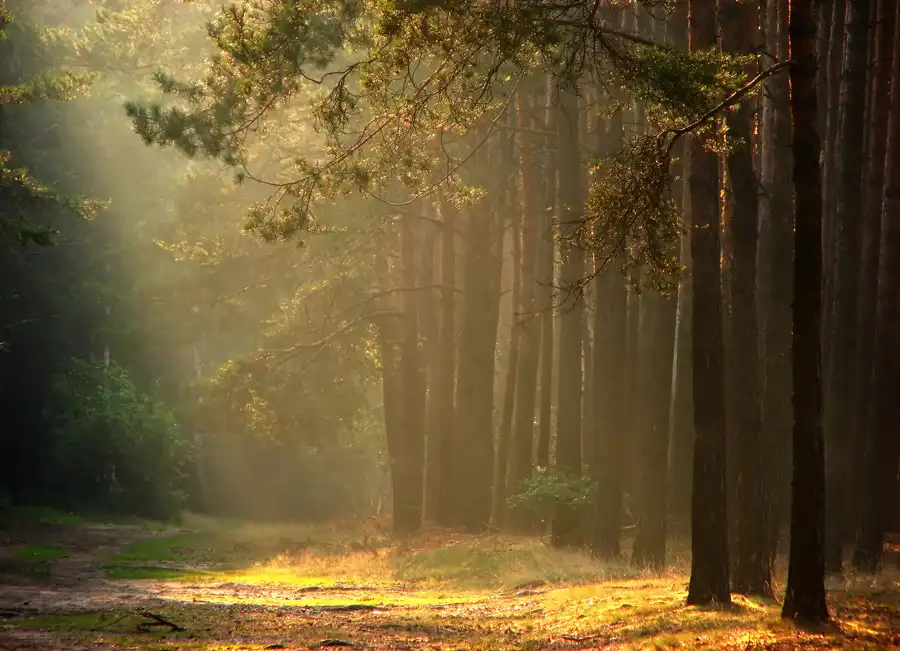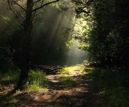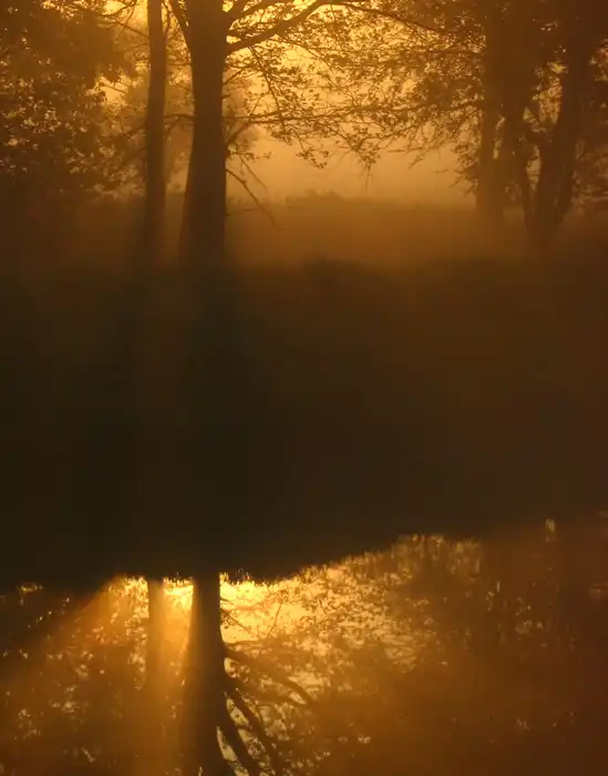 Лучи света сквозь листву и туман...