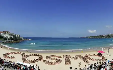На австралийском пляже Бондай 1010 девушек установили новый мировой рекорд )))Суть - самое большое количество девушек в бикини на одной фотографии. Акция была организована журналом Cosmo.